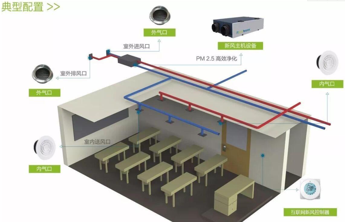 3、為了節約能源,減少空氣調節、制冷和供暖負荷,提高室內舒適性,選用標準全熱交換器的新風機,全熱交換器是對過冷或過熱的室外空氣進行預處理,然后將其帶入室內,避免冷熱空氣直接進入室內,導致學生感冒。